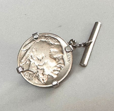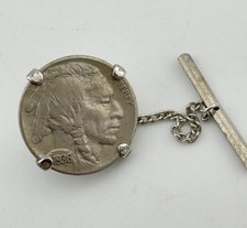 JEWELRY 1936 Indian Head Buffalo Nickel Five Cent Coin Tie Bar Clasp Jewelry