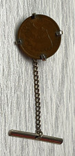 Vintage 1905 Indian Cent Tie Tack w/Chain & Bar, Lapel/Sweater Pin, Lightly Used