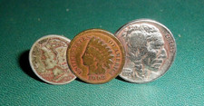 3x Coin Tie Tacks/Lapel Pins -1907 Nickel -1902 Indian Penny-1907 Indian Penny