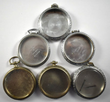 Vintage Lot of 6 12s Open Face Pocket Watch Cases Base Metal Silveroid lot.wa