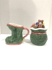 Vintage Fitz and Floyd Omnibus Toyland Stocking & Toy Box Sugar & Creamer Set