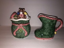 Vintage Macy's Christmas Sugar And Creamer Set - Santa's Toy Sack And Boot