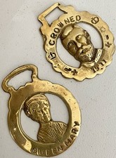 Antique Set 2 Equestrian Brass Horse Harness Medallions King George V Queen Mary