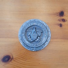 Cast Metal US Navy Emblem Plaque Coin Rustic Antique Finish 3.5 Inches Diameter
