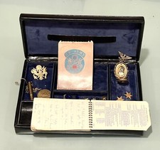 Vintage Antique Lot Military Army Cadet Gold Photo Frame Pin Label Medal Bullet