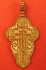 Antique Russian Orthodox OLD BELIEVERS Bronze ENAMELED Cross 46 mm ORIGINAL Icon