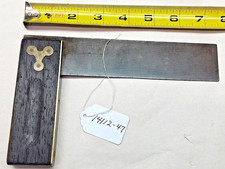 Showy Antique Vintage Try Square Carpenters Measuring Tool & Brass Trim Inv#GS29