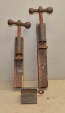 2 heavy cast iron bench scew holding clamp collectible antique wood vise lot