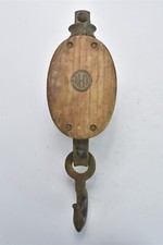 Antique Primitive Farm or Nautical Wooden Pulley Block and Tackle with Hook