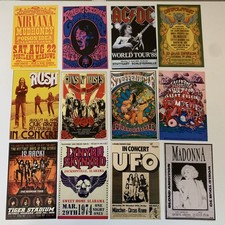 Mini Concert Poster Tour 4 X 6 Vintage Replica Lot Of 12 - ACDC, Nirvana, Stones
