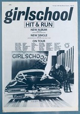 GIRLSCHOOL 1981 vintage POSTER ADVERT HIT & RUN UK CONCERT TOUR Motörhead BRONZE