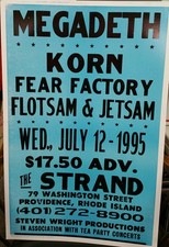 Megadeth Korn Vintage Concert Poster Fear Factory The Strand Block Print 1990s