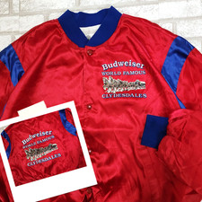 VTG Budweiser Beer World Famous Clydesdales Red Blue Satin Snap Jacket XLarge *