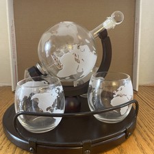 Godinger Whiskey Decanter Globe Set with 4 Etched Glasses