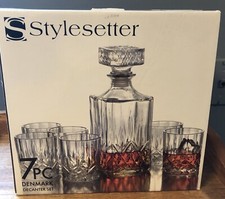 7 Pc Old Fashioned Crafted Glass Whiskey Decanter & Glasses Liquor Glassware Set