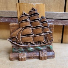 Vintage Antique Syroco Wood Clipper Sailing Ship Clothing/Shoe Brush Holder