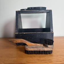 Vintage Shoes Shine Box with Brushes/Art Very Early American Made In U.S.A Nice