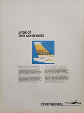 1966 Continental Airways Print Ad Wall Art Decor Ephemera Tail of 2 Continents