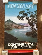 CONTINENTAL AIRLINES VISIT NEW ZEALAND Original Vtg Travel Poster 1970’s 25x40