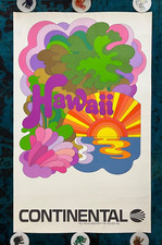Original Travel Poster Continental Airlines Hawaii Beach Sun Psychedelic