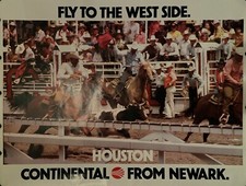CONTINENTAL AIRLINES HOUSTON 1970'S ORIGINAL TRAVEL POSTER 45" X 59" ROLLED NEW