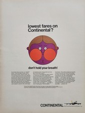 1966 Continental Airways Print Ad Wall Art Decor Ephemera Don't hold Your Breath