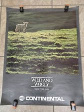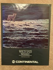 Vintage Continental Airlines Wild & Wooly New Zealand Travel Poster 1991