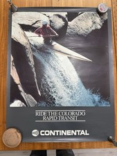 Continental Airlines Poster Travel Colorado White Water Rapids River Rafting EUC