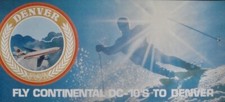 CONTINENTAL AIRLINES FLY TO DENVER COLORADO DC 10 Travel poster SKI 14x30 1972