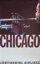 CONTINENTAL AIRLINES CHICAGO JAZZ Vintage 1963 Travel poster 25x40 RARE