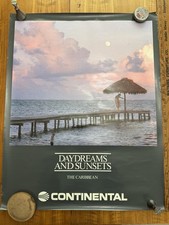 Vintage Continental Airlines Poster The Caribbean Dock Sunset 28x22" #6