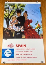 BIG VINTAGE POSTER SPAIN BY KLM ADVERTISING FLIGHTS ROYAL DUTCH AIRLINES 1990’s