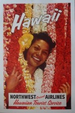 Original Vintage Northwest Orient Airlines Hawaii Advertising Travel Poster