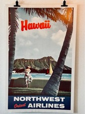 NORTHWEST ORIENT AIRLINES HAWAII Vintage 1962 Travel poster 25x40 NM LINEN