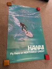 RARE Original Vintage Fly Northwest Orient Airlines Hawaii Poster Airport Travel