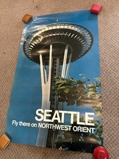 NORTHWEST ORIENT AIRLINES SEATTLE SPACE NEEDLE Vintage 1973 Travel poster 25x40