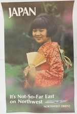 NORTHWEST ORIENT AIRLINES JAPAN Vintage 1973 Travel poster 25x40 NM LINEN