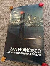 NORTHWEST ORIENT AIRLINES San Francisco Vintage 1970s Travel Tourism Poster VG+