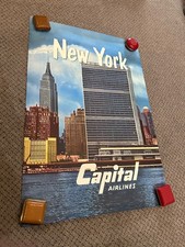RARE Original Vintage Fly Capital Airlines New York Poster Airport