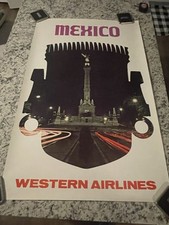 WESTERN AIRLINES MEXICO Vintage 1975 Travel poster 25x39 VERY RARE