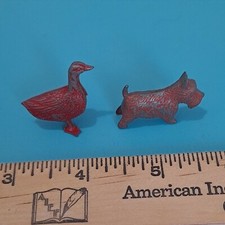 2 Vintage Cracker Jack Toys Dog Duck Metal A3