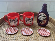 Vintage Play Food Hersheys Chocolate Syrup Prop 2 Cups/Mugs 2 Spoons OG Stickers