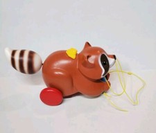 Vintage 1979 Fisher Price Quaker Oats Raccoon Pull Toy With Rolling Ball