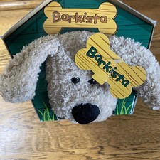 Vtg 2003 Barkista Starbucks Plush Dog Toy in Doghouse Light Beige