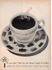 Vintage advertising print Drink Coffee Cup Tiny toy cars One for the Road 1955