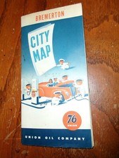 VINTAGE BREMERTON WASHINGTON UNION OIL 76 GAS SERVICE STATION ROAD MAP 1950S