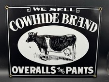 Vintage Ande Rooney Cowhide Brand Cow Porcelain Advertising Sign Overalls & Pant