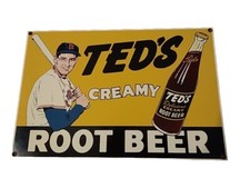 Ted’s Creamy Root Beer. Ande Rooney’s Porcelain Enameled Advertising Sign