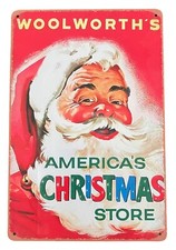 Retro Woolworth's Santa Christmas Metal Advertising Sign 12" x 8"