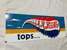 Old ANDE ROONEY Porcelain Enameled PEPSI COLA Tops advertising Sign 1992